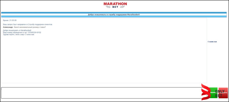 Клиентская поддержка БК «Marathon Bet»