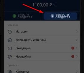 2. В открывшемся разделе нужно кликнуть на раздел «Вывести средства».