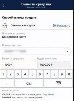 Вывод выигрыша на банковскую карту