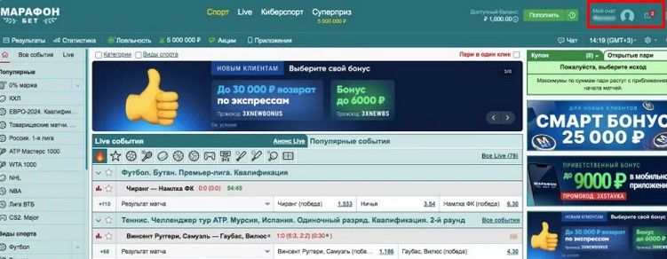 На сайте БК Марафон