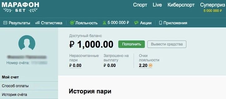 Вывод денег в БК Марафон